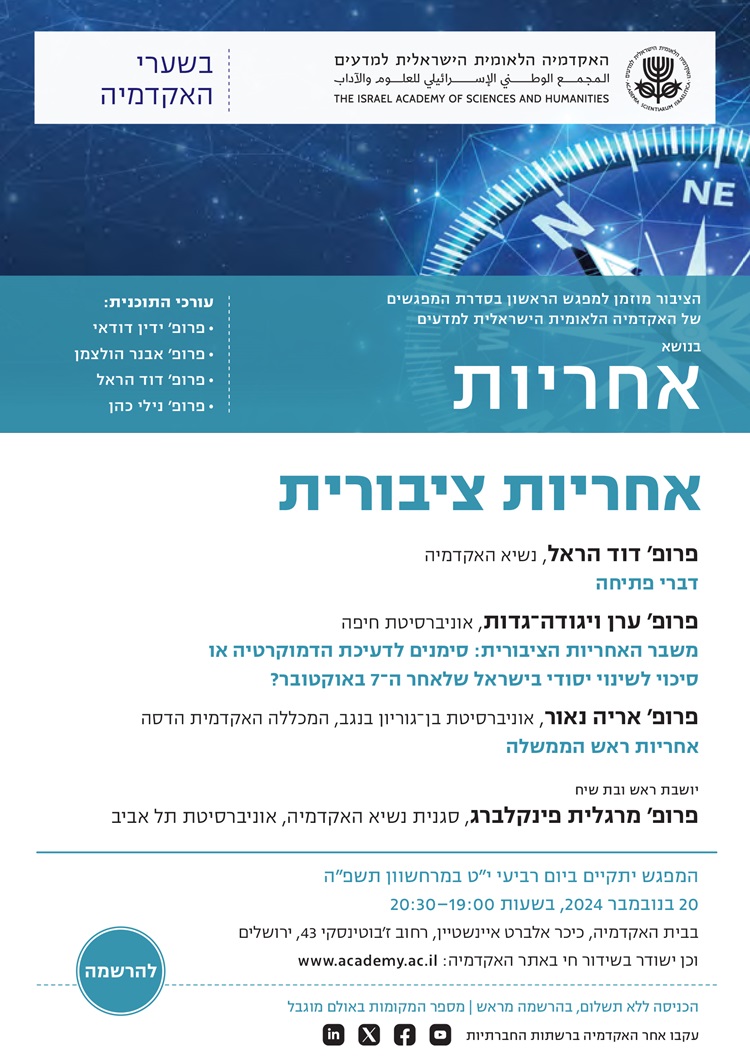 המפגש הראשון בסדרת "בשערי האקדמיה" לשנת תשפ"ה | "אחריות ציבורית"