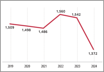 מספר ההגשות, הזכיות ושיעורי הזכייה במענקים האירופיים ERC לעומת מדינות ייחוס (2015–2024).