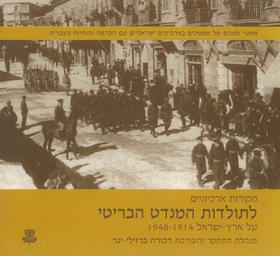 Electronic database on CD-ROM (in English) + 84-page brochure (in English and Hebrew). This electronic catalogue of sources on the history of the British Mandate is the product of a cooperative effort of the British Academy and The Israel Academy of Sciences and Humanities to locate, catalogue, and classify archival documents relating to British Government policy towards Palestine, and to political and administrative relations between the mandatory government and the population of Palestine in the years 1914–1948.