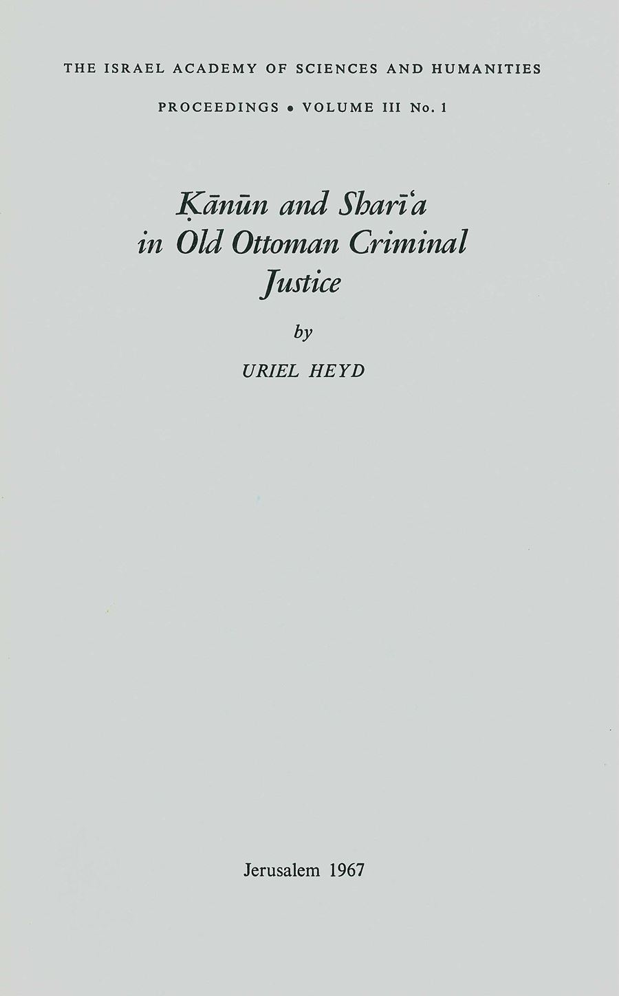Ḳānūn and Sharī'a in Old Ottoman Criminal Justice