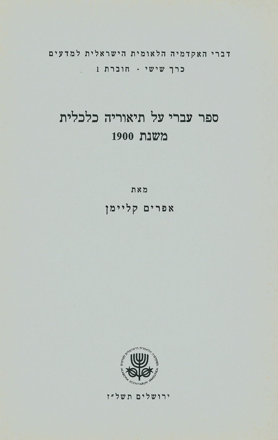 A Hebrew Book on Economic Theory from the Year 1900