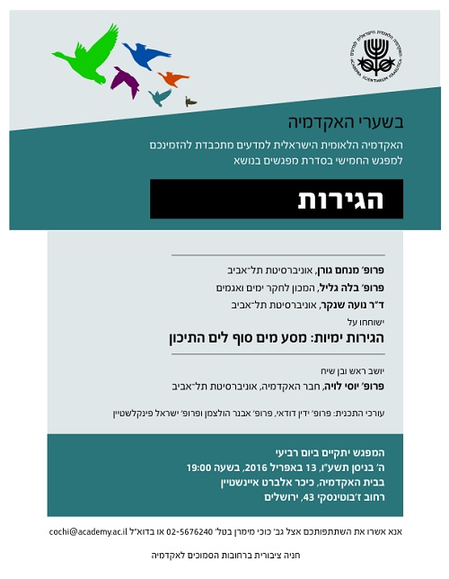 Registration: Ms. Cochi Mimran, Telephone: +972-2-5676240 or Email: Cochi@academy.ac.il