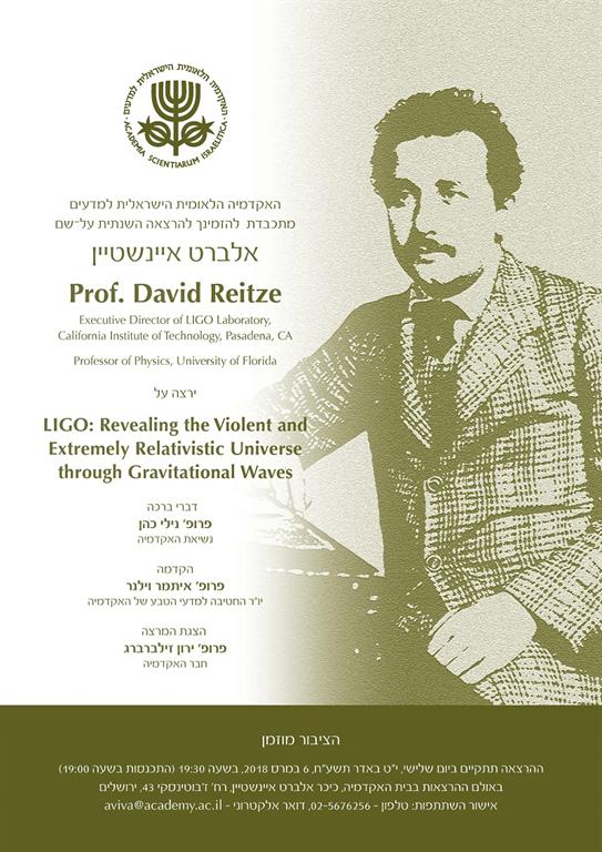 The annual lecture in memory of Albert Einstein: Prof. David Reitze