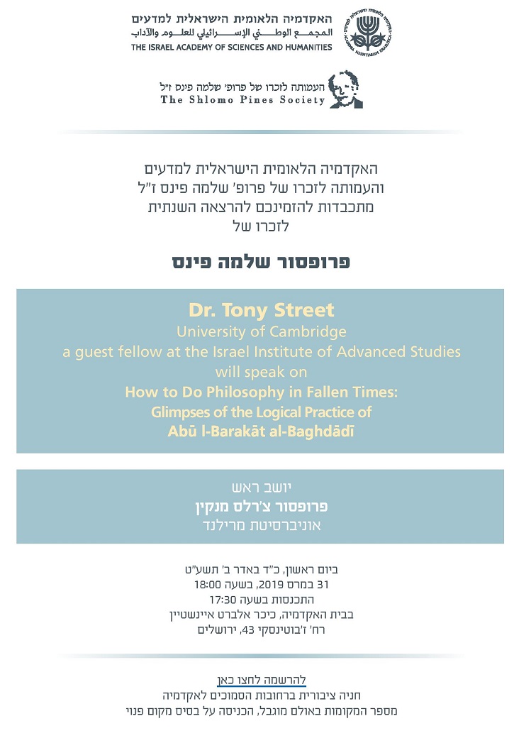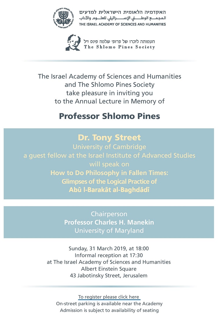 The Annual Lecture in Memory of Professor Shlomo Pines: Dr. Tony Street