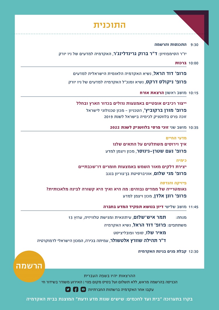 סימפוזיון פרסי בלווטניק לחוקרים צעירים בישראל לשנת 2022