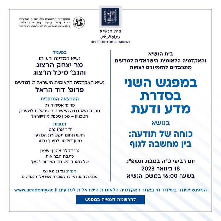 המפגש השני בסדרת מדע ודעת בבית הנשיא | כוחה של תודעה: בין מחשבה לגוף