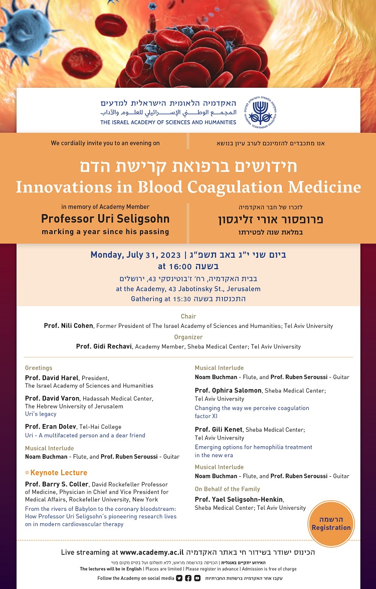 Innovations in Blood Coagulation Medicine | Conference in memory of Academy Member Professor Uri Seligsohn marking a year since his passing