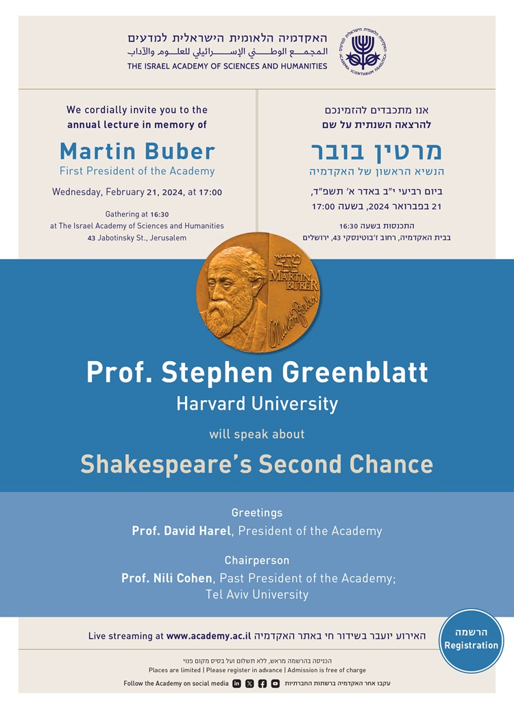 ההרצאה השנתית על שם מרטין בובר -Shakespeare’s Second Chance | Prof. Stephen Greenblatt