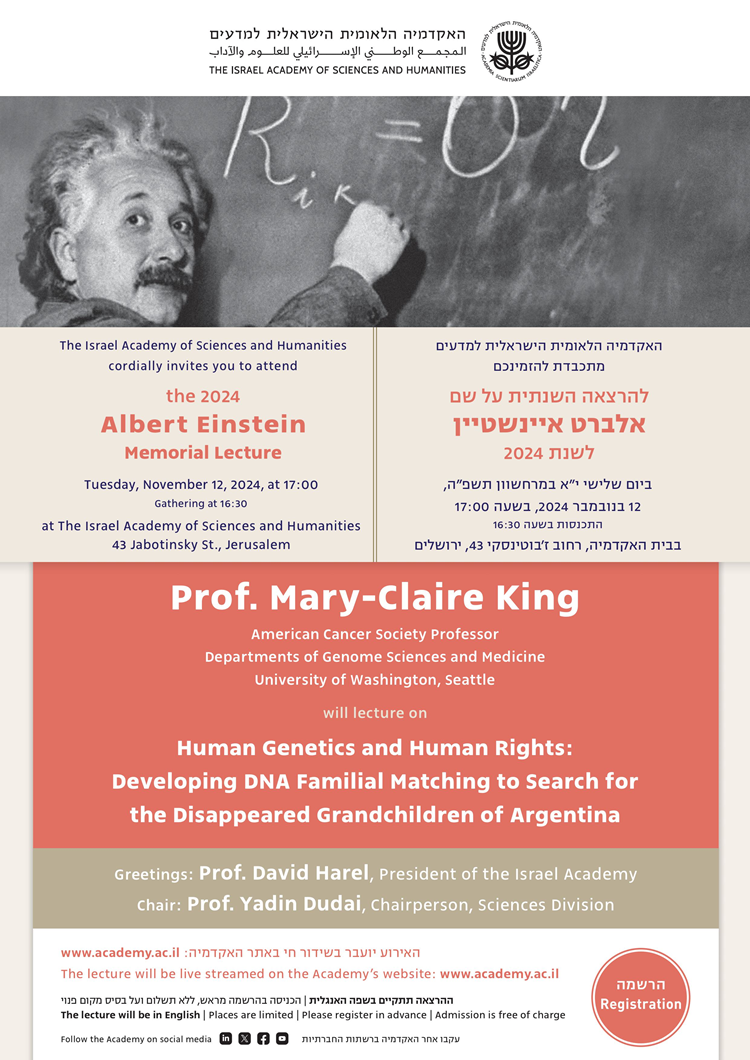 ההרצאה השנתית על שם אלברט איינשטיין - Prof. Mary-Claire King