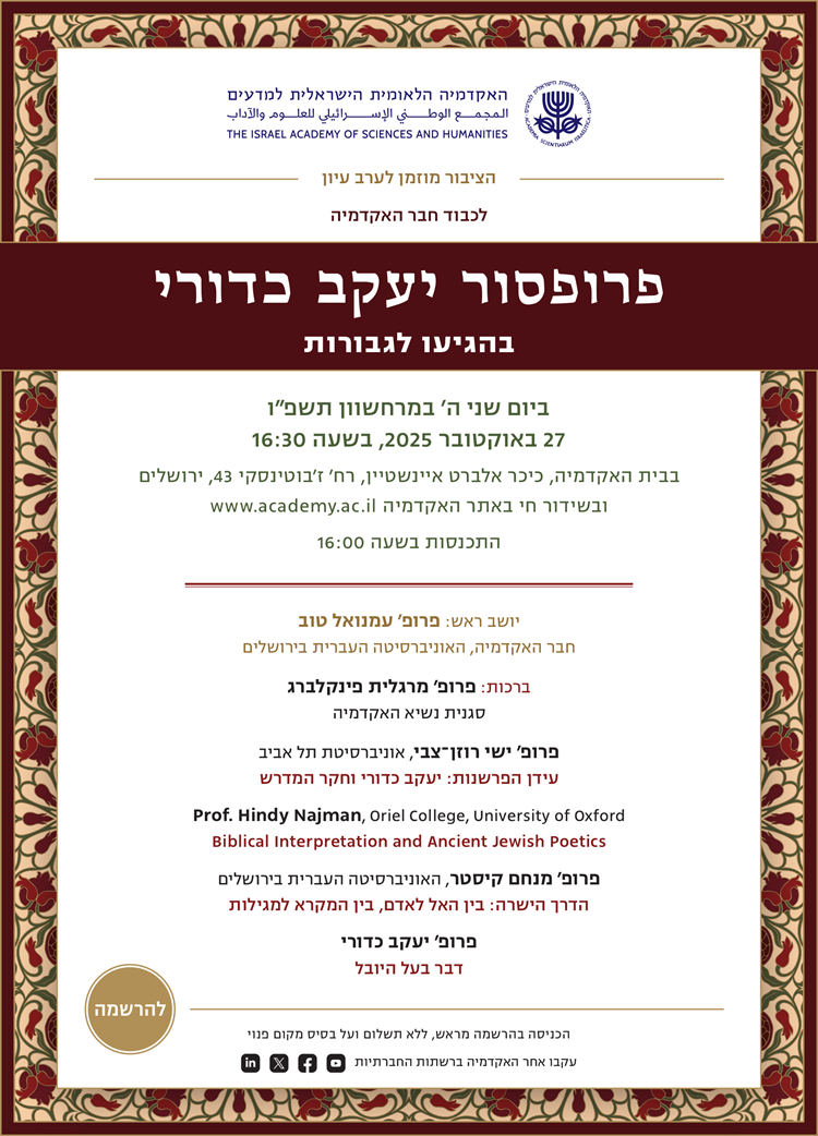 ערב עיון לכבוד חבר האקדמיה פרופ' יעקב כדורי בהגיעו לגבורות