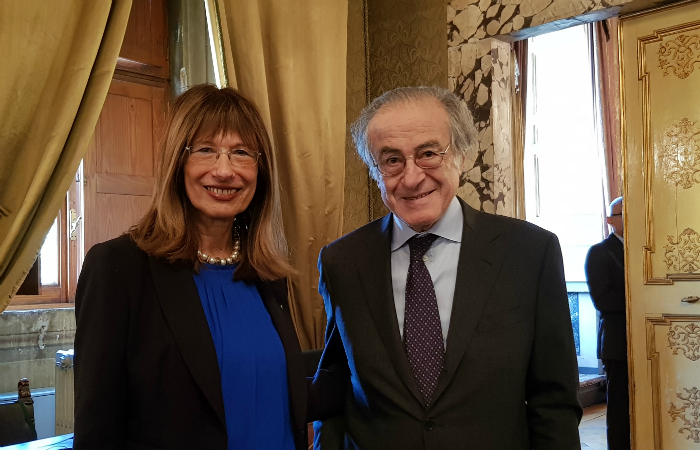 בתמונה (מימין): הנשיא לשעבר של האקדמיה דיי לינצ'יי פרופ' אלברטו קוואדריו קורציו, נשיאת האקדמיה פרופ' נילי כהן,