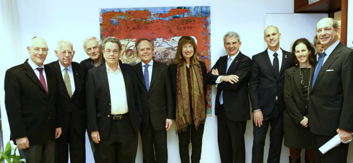 פרופ' נילי כהן, שר החוץ האיטלקי פרופ' אנצו מואוורו מילנזי וחברי האקדמיה פרופ' דניאל פרידמן, פרופ' מנחם יערי,