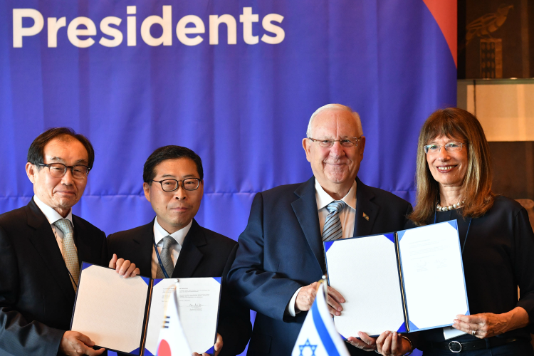 בתמונה: טקס חידוש הסכם שיתוף הפעולה עם האקדמיה הקוריאנית למדע וטכנולוגיה, במעמד נשיא המדינה מר ראובן (רובי) ריבלין (צילום: קובי גדעון / לע"מ)