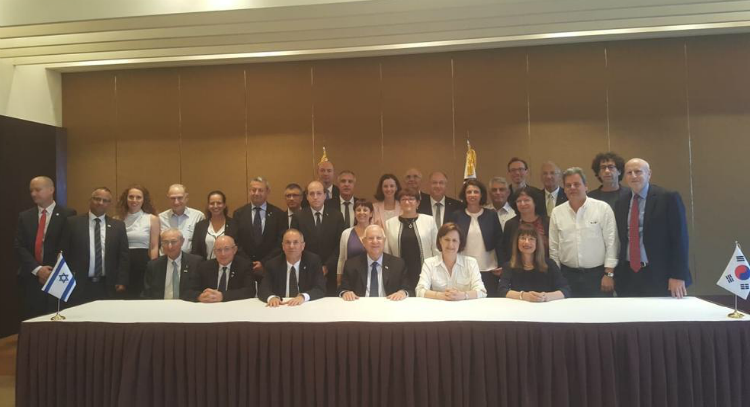 בתמונה: המשלחת האקדמית הישראלית שליוותה את נשיא המדינה בביקורו הרשמי בדרום קוריאה