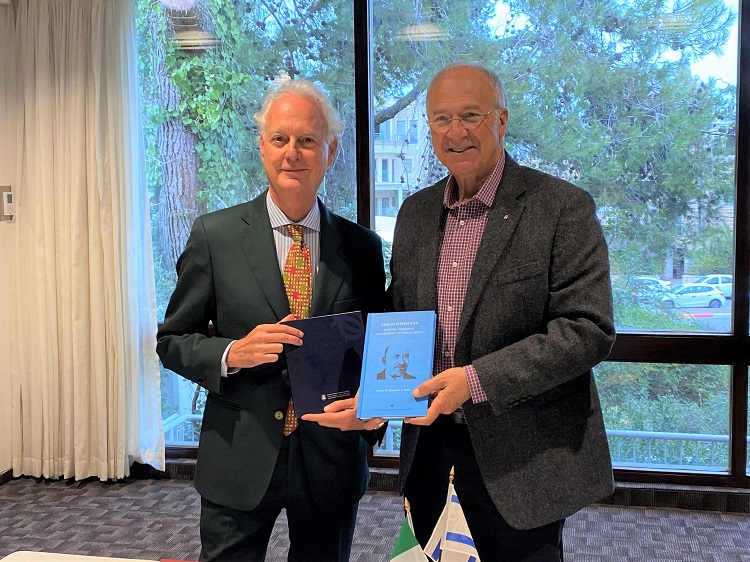 מימין לשמאל: נשיא האקדמיה פרופ' דוד הראל והשגריר סרג'ו ברבנטי