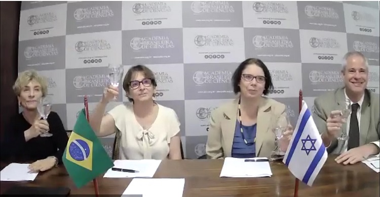פרופ' ידין דודאי, סגנית נשיאת האקדמיה של ברזיל באזור ריו דה ז'ניירו פרופ' פטריסיה טורס בוזה (Prof. Patricia Torres Bozza), מנהלת האקדמיה של ברזיל פרופ' מרייה דומינגס וארגס (Prof. Maria Domingues Vargas), מנהל קשרי החוץ של האקדמיה של ברזיל מרקוס קורטסאו בארנסלי שוינסטול (Marcos Cortesão Barnsley Scheuenstuhl) וראש האגף לקשרים בין-לאומיים באקדמיה הישראלית ד"ר נטע פרץ.