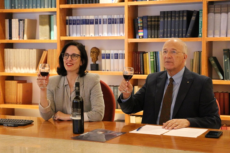 מימין לשמאל: נשיא האקדמיה פרופ' דוד הראל וראש האגף לקשרים בין-לאומיים באקדמיה ד"ר נטע פרץ.