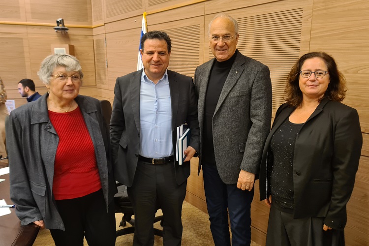 From left: Academy Vice President Prof. Margalit Finkelberg, Knesset Science and Technology Committee Chairman MK Ayman Odeh, Academy President Prof. David Harel, and Academy Director-General Galia Finzi, at the Knesset