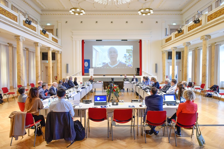 נשיא האקדמיה הלאומית הישראלית למדעים פרופ' דוד הראל נושא דברי פתיחה בפני הכינוס באופן מקוון. צילום: Markus Scholz for the Leopoldina