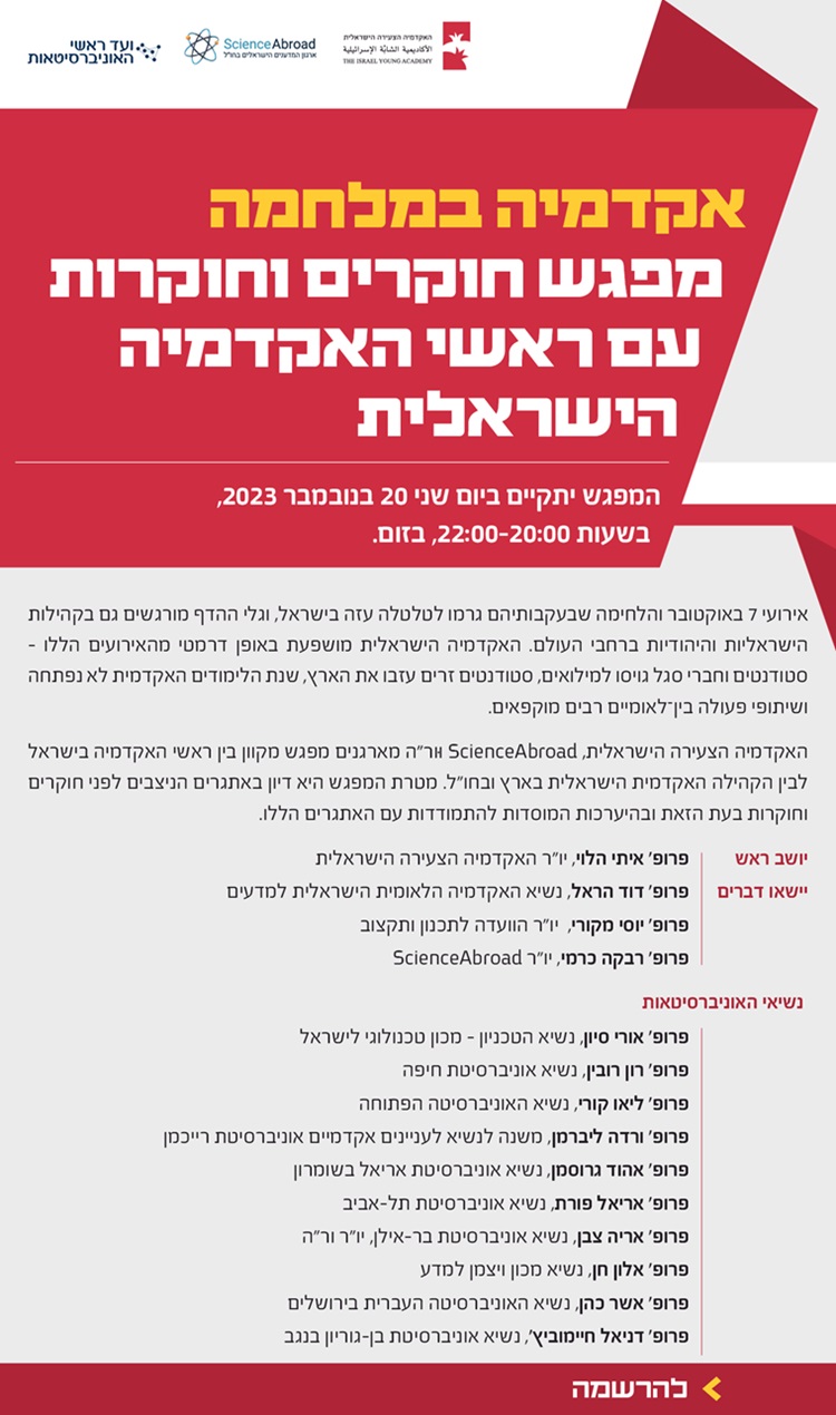האקדמיה הצעירה הישראלית מבית האקדמיה הלאומית למדעים, ביחד עם ארגון Science Abroad וועד ראשי האוניברסיטאות (ור"ה) ונערך ב-20 בנובמבר 2023, בעיצומה של מלחמת חרבות ברזל.