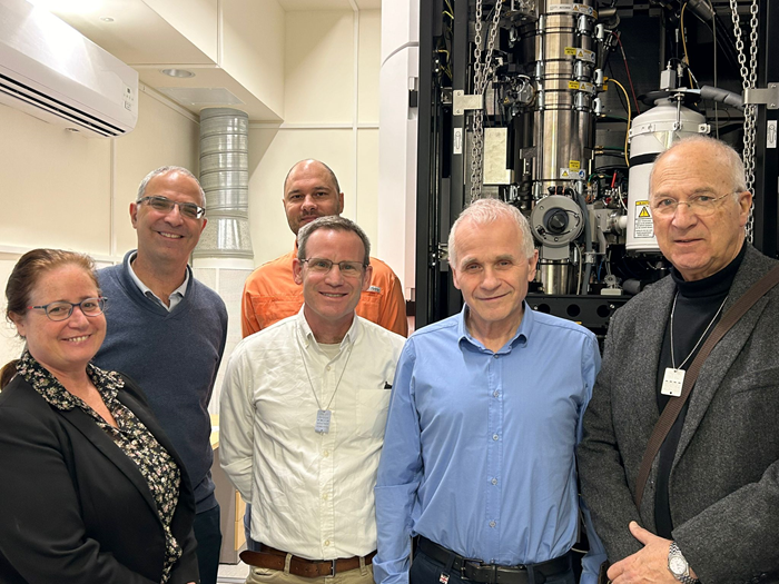 מימין: נשיא האקדמיה פרופ' דוד הראל, נשיא האוניברסיטה פרופ' אשר כהן, ראש מרכז הננו פרופ' הדר שטיינברג, מרכז הננו ד"ר סרגיי רמניק, מנכ"ל האוניברסיטה העברית ישי פרנקל ומנהלת האקדמיה גב' גליה פינזי.