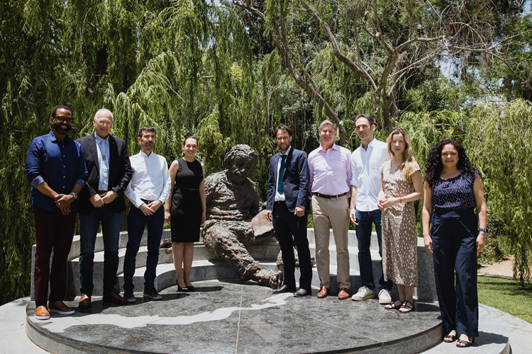 מימין: קמאלה מרת'י, ד"ר סוניה דוגאל, פרופ' עודד רכבי, נציג קרן משפחת בלווטניק מר פיטר תורן, ד"ר שרגא שוורץ, ד"ר מורן שלו בן-עמי, פרופ' תומאס וידיק, נשיא האקדמיה פרופ' דוד הראל ואיינסלי א. גולבורן.