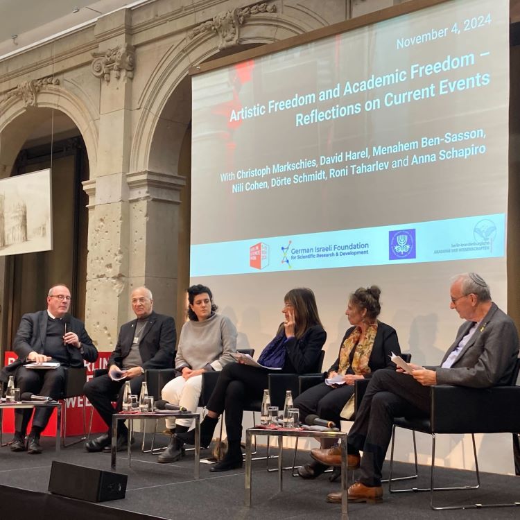 השבוע השתתפו נשיא האקדמיה פרופ' דוד הראל ונשיאת האקדמיה לשעבר פרופ' נילי כהן בפאנל משותף לאקדמיה הישראלית, האקדמיה הגרמנית של ברלין-ברנדנבורג וקרן גרמניה-ישראל למחקר ולפיתוח מדעי (German-Israeli Foundation - GIF) שנערך במסגרת "שבוע המדע של ברלין" ועסק בנושא "חופש אמנותי וחופש אקדמי - הרהורים על אירועים עכשוויים". עוד במסגרת הביקור, ערך פרופ' הראל פגישה עם שרת החינוך והמחקר של גרמניה בטינה סטארק-ווצינגר, בה שוחחו על האתגרים הניצבים בפני המדע הישראלי בעת הזו.