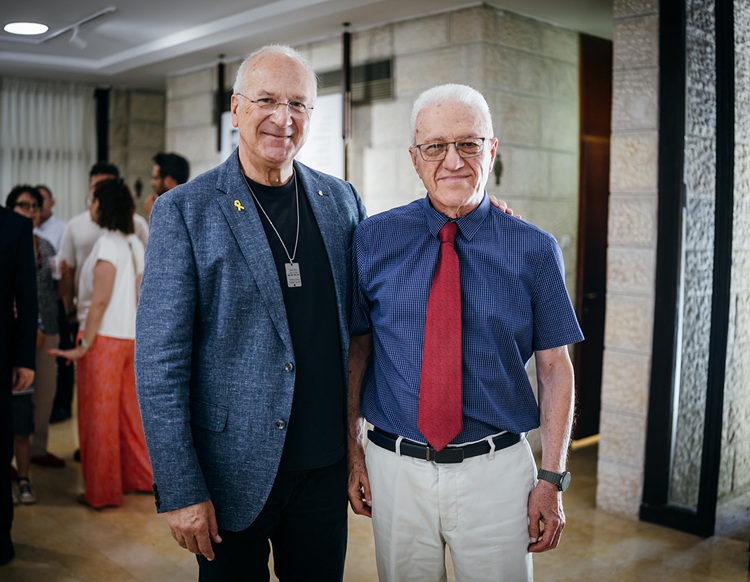 מימין: יו"ר ות"ת היוצא פרופ' יוסי מקורי ונשיא האקדמיה פרופ' דוד הראל באירוע הפרידה, צילום: יואב אלון