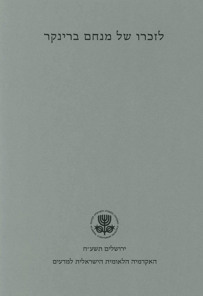 התוכן: אבישי מרגלית, 'מנחם: שנה'; שלומית רמון־קינן, 'תרומתו של מנחם ברינקר לסוגיית ייצוג המציאות בספרות'; אבנר הולצמן, '"לִי הוּא – אָמַר הַסֵּפֶר": מקומו של מנחם ברינקר בחקר הספרות העברית'; חיים באר, 'פני מנחם'.
