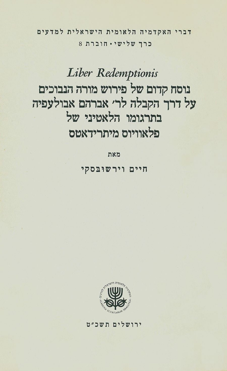 Proceedings of the Academy (Hebrew series), vol. III, no. 8
