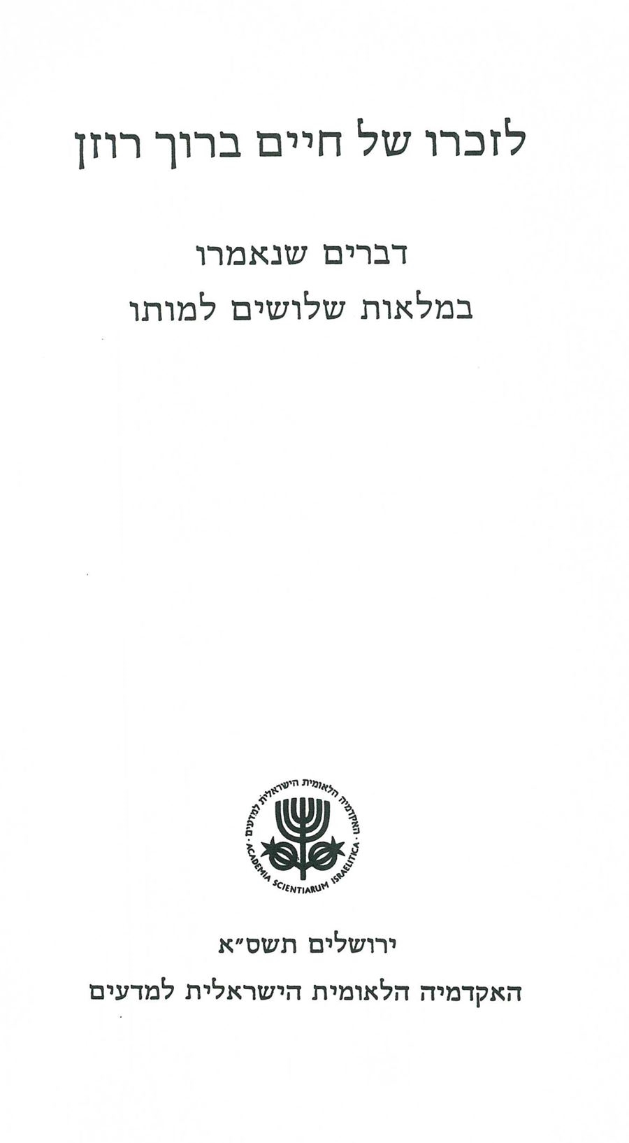 The brochure includes a bibliographical listing of the writings of Haiim Baruch Rosén