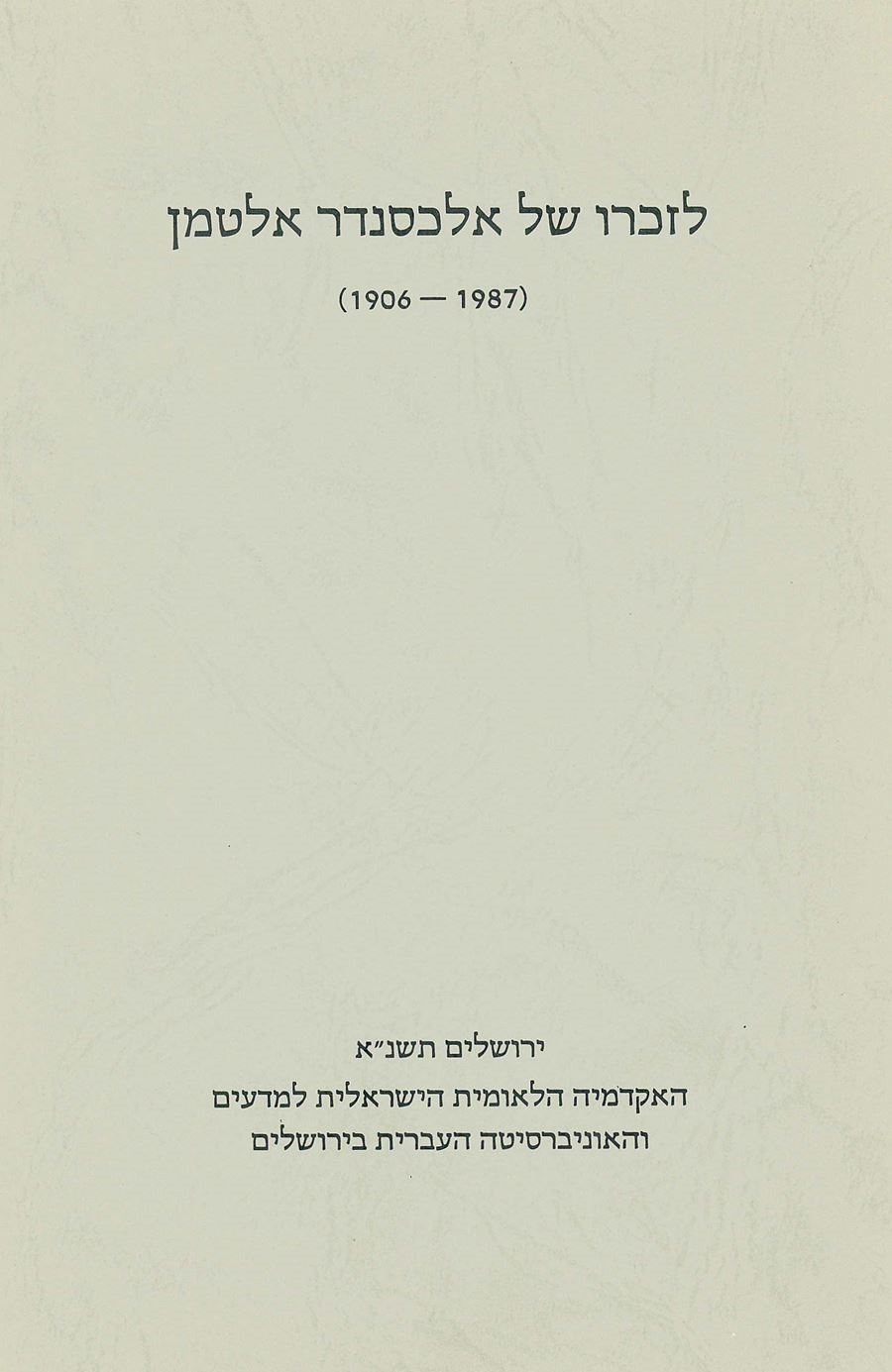 Alexander Altmann – In Memoriam