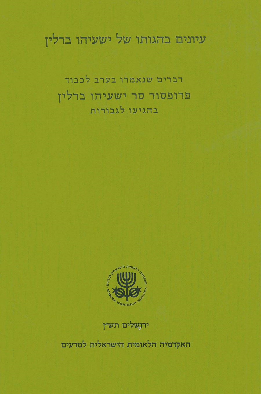 Papers Presented in Honour of Professor Sir Isaiah Berlin on the Occasion of his Eightieth Birthday