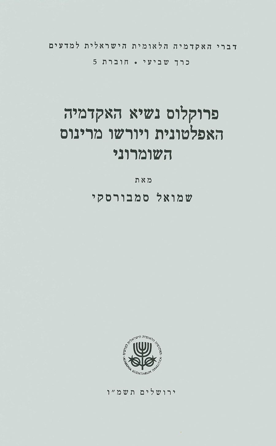 Proceedings of the Academy (Hebrew series), vol. VII, no. 5