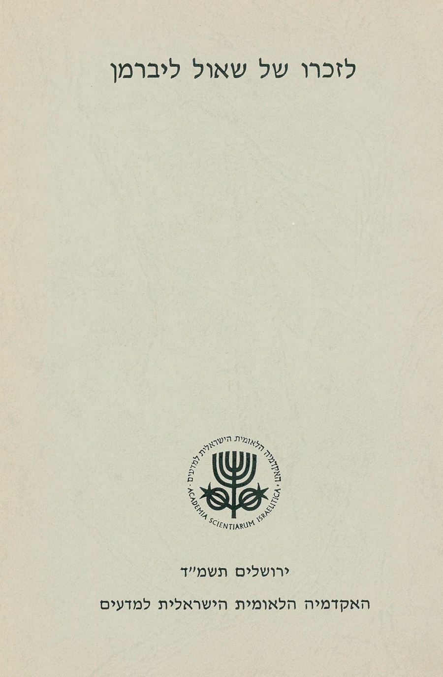 Saul Lieberman – In Memoriam