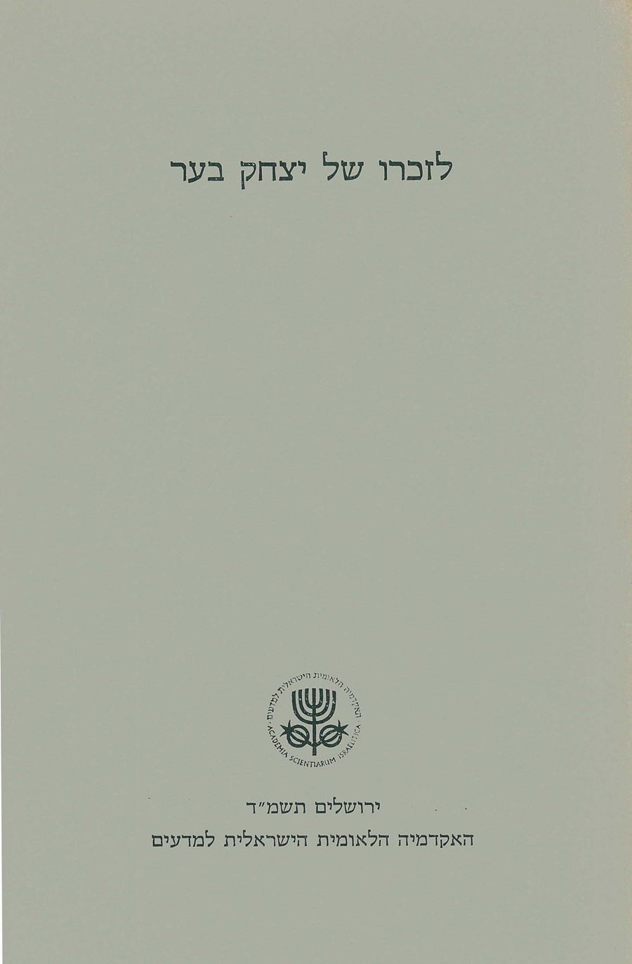 Yitzhak Baer – In Memoriam