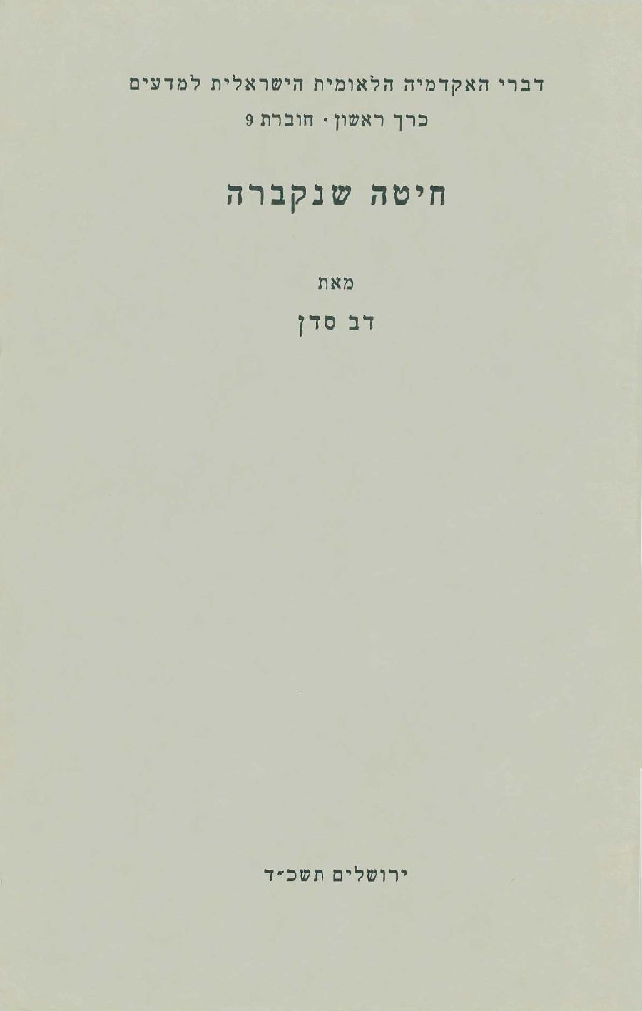 Proceedings of the Academy (Hebrew series), vol. I, No. 9