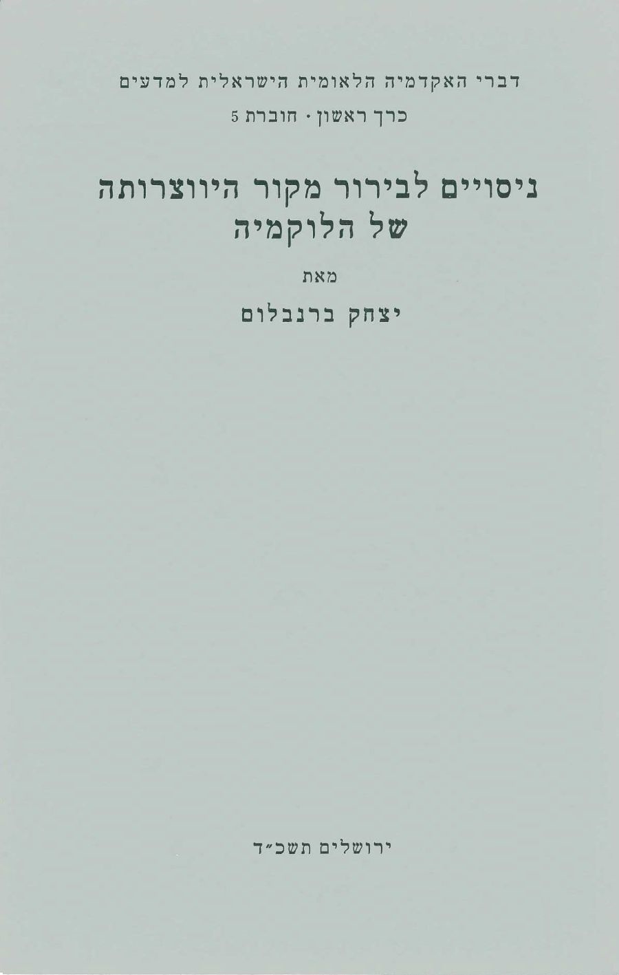 Proceedings of the Academy (Hebrew series), vol. I, no. 5