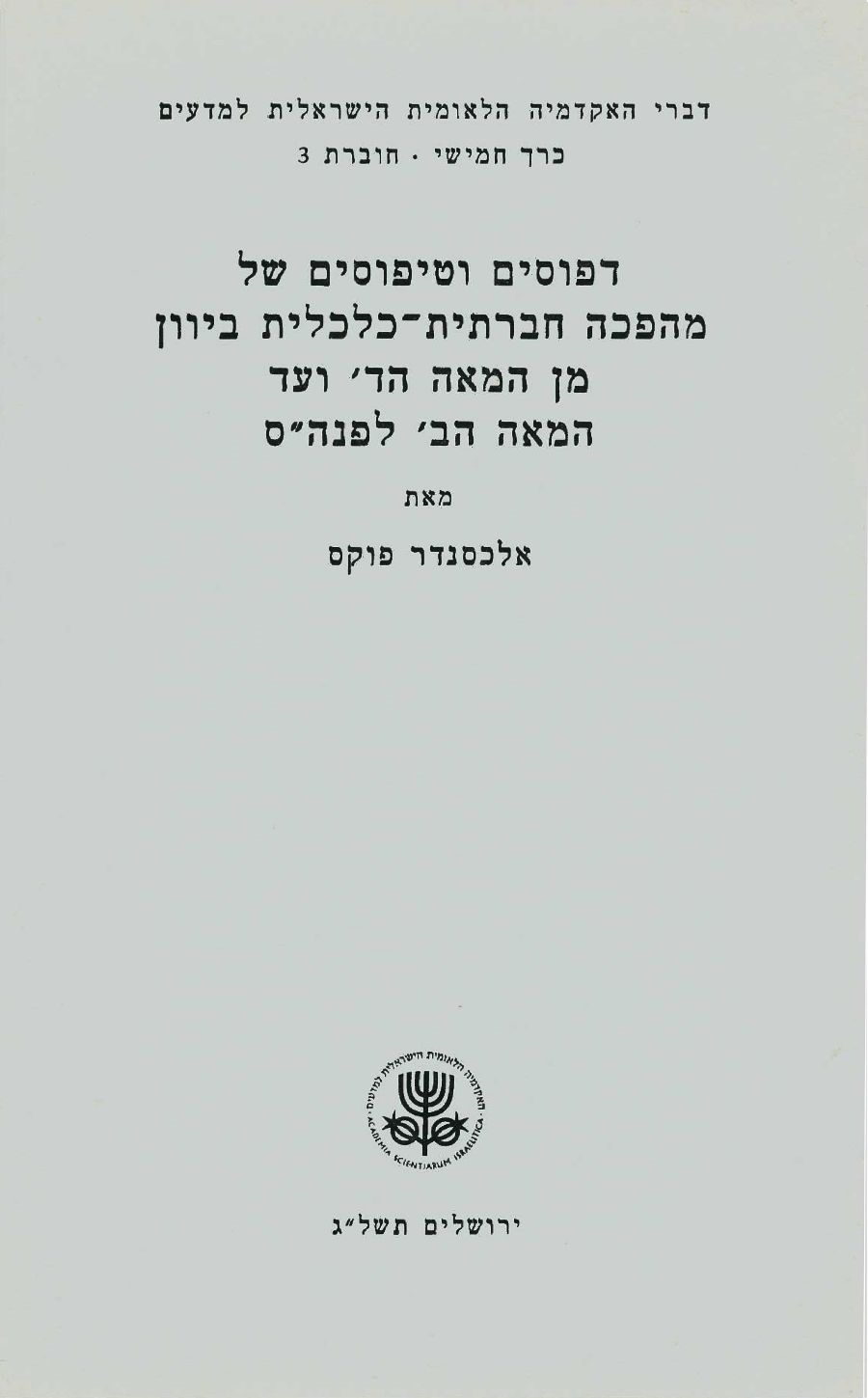 Proceedings of the Academy (Hebrew series), vol. V, no. 3