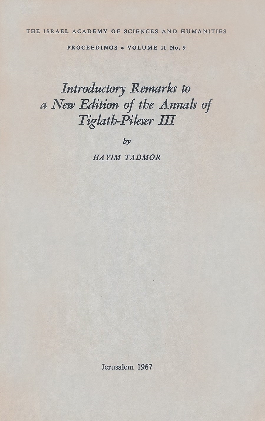 Proceedings of the Israel Academy of Sciences and Humanities (English series)